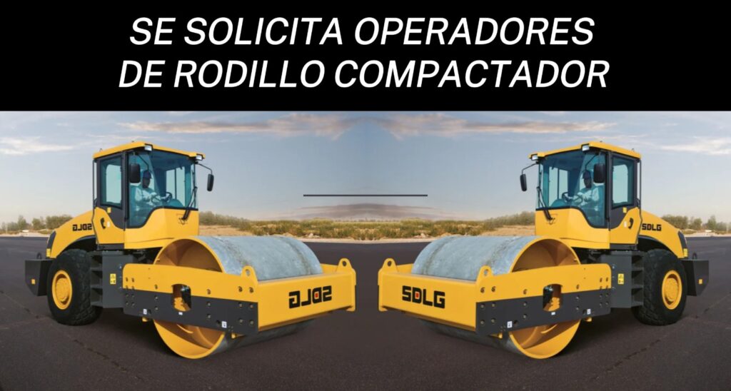 - Mínimo 02 años de experiencia certificada operando rodillos compactadores (vibratorios, lisos o pata de cabra) en proyectos de carreteras, movimiento de tierras o pavimentación.